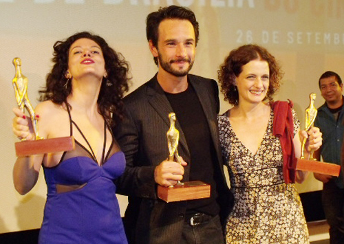 Gilda ao lado de Rodrigo Santoro e Denise Fraga, no Festival de Brasília[/caption]