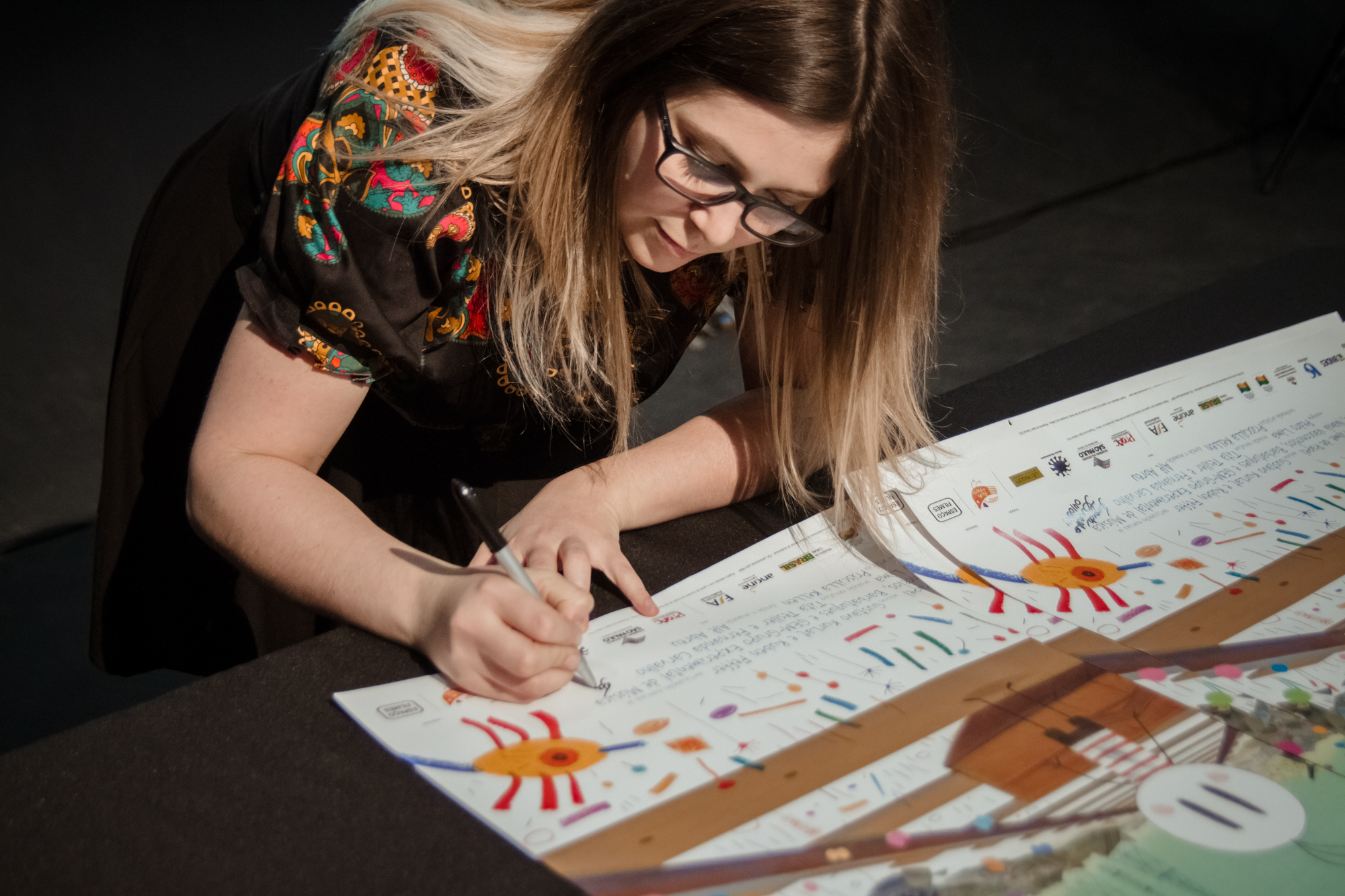 Fernanda Carvalho assinando o poster do filme "O Menino e o Mundo", tradição de todos os eventos da AIC. Fotos: Yuri Pinheiro[/caption]