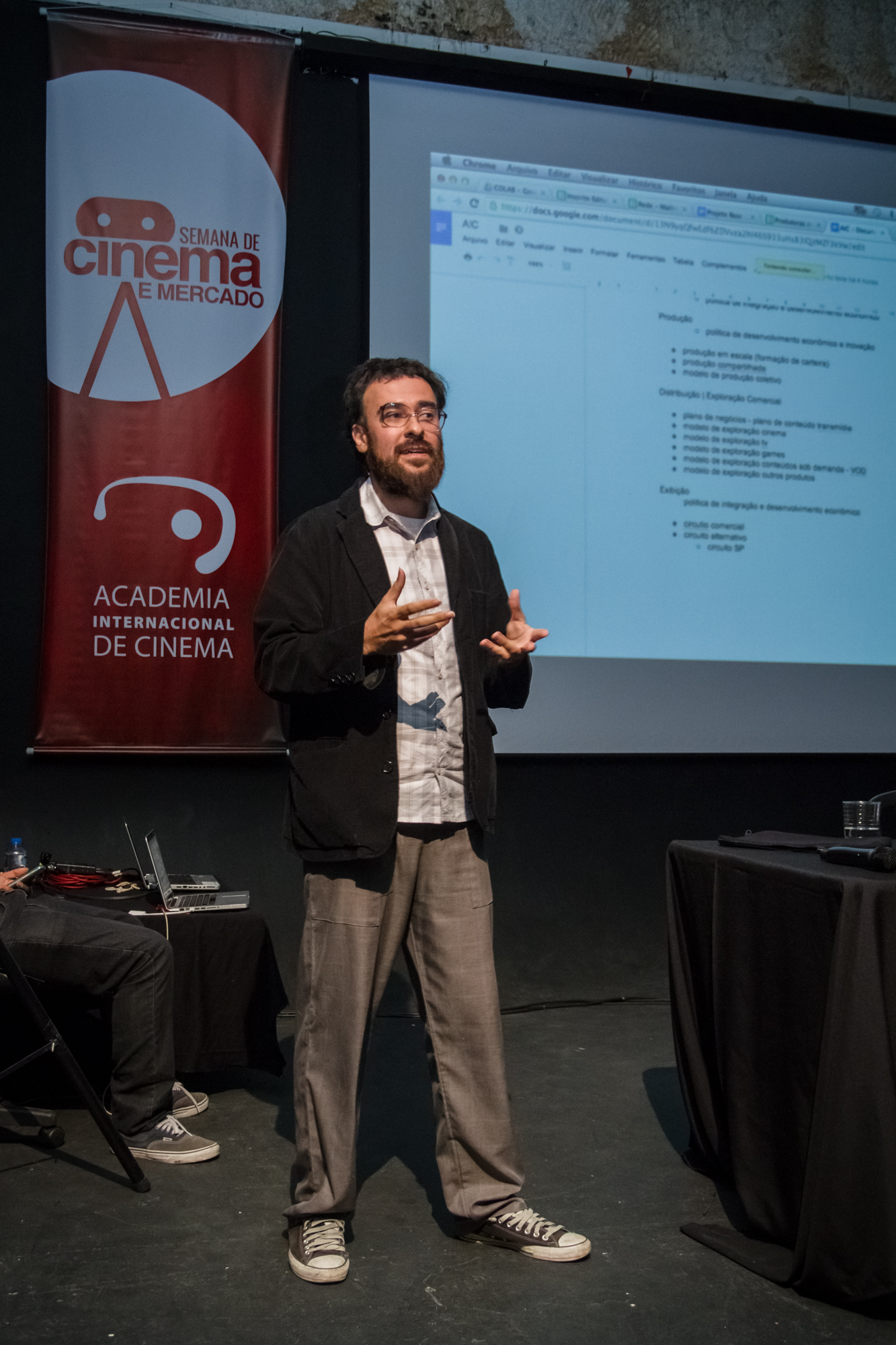 O coordenador de Fomento ao Cinema da Secretaria Municipal de Cultura de São Paulo, Renato Nery, contou como irá funcionar a SP Cine, empresa pública de cinema e audiovisual de São Paulo, criada para fomentar o setor. Com o estúdio cheio, a terceira noite da Semana de Cinema e Mercado - que este ano faz parte das comemorações de 10 anos da Academia Internacional de Cinema (AIC) - foi um grande bate-papo.