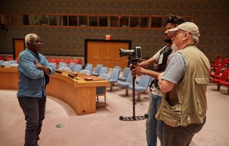Cleumo Segond, professor de Direção de Fotografia da AIC, com a equipe em Nova York[/caption]