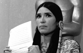 A atriz e ativista de direitos civis Sacheen Littlefeather, de origem indígena, que participou da cerimônia no lugar de Marlon Brando, que se recusou a receber sua estatueta de Melhor Ator em O Poderoso Chefão (1972) alegando ser contra a discriminação e os retratos estereotipados da população indígena na indústria cinematográfica norte-americana.[/caption]