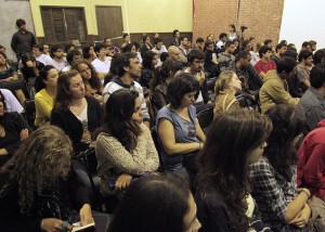 A terceira e mais esperada noite da Semana de Orientação, contou com a presença da escritora, diretora e roteirista argentina Lucía Puenzo. Com o seu espanhol ligeiro, a palestrante cativou os convidados falando sobre literatura e cinema argentino. “A literatura e o cinema são áreas muito distintas. As pessoas acham que são semelhantes, mas não, são processos criativos muito diferentes. Quando escrevo literatura, não sigo um planejamento, escrevo em torno de uma página por dia, mas não sei onde aquilo vai parar, não tem um final pronto. A literatura pra mim é como trabalhar com música, tem um ritmo é um processo de digressão. Já o cinema, em geral, você sabe onde termina, tem várias versões do roteiro, existe toda uma estruturação, muito mais gente trabalhando em volta daquela nova ideia. Quando eu vejo uma nova ideia, eu já sei exatamente se aquilo é literário ou cinematográfico”.