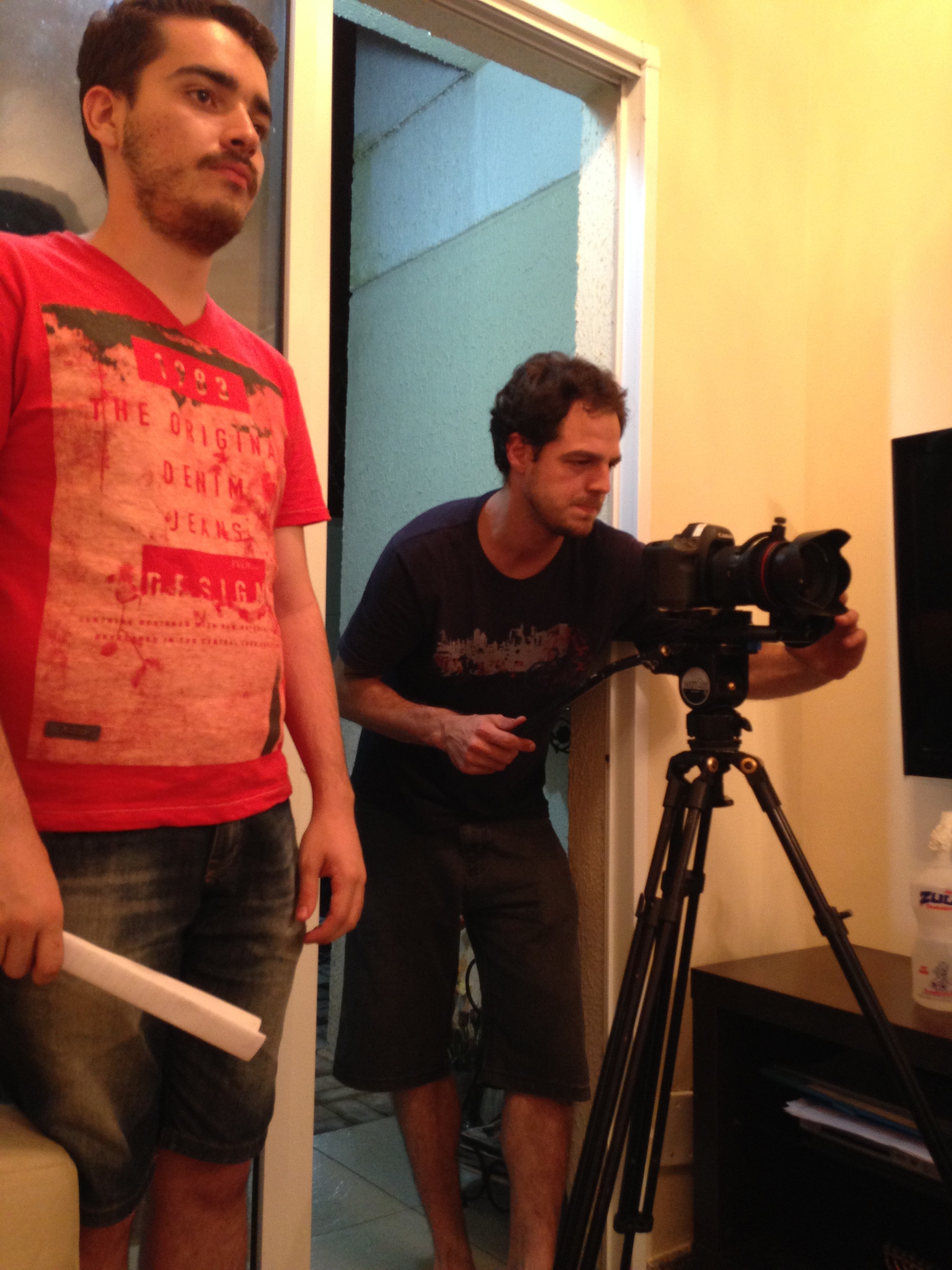 O diretor Guilherme Andrade e o diretor de fotografia Paulo Fischer, durante as gravações do curta.[/caption]