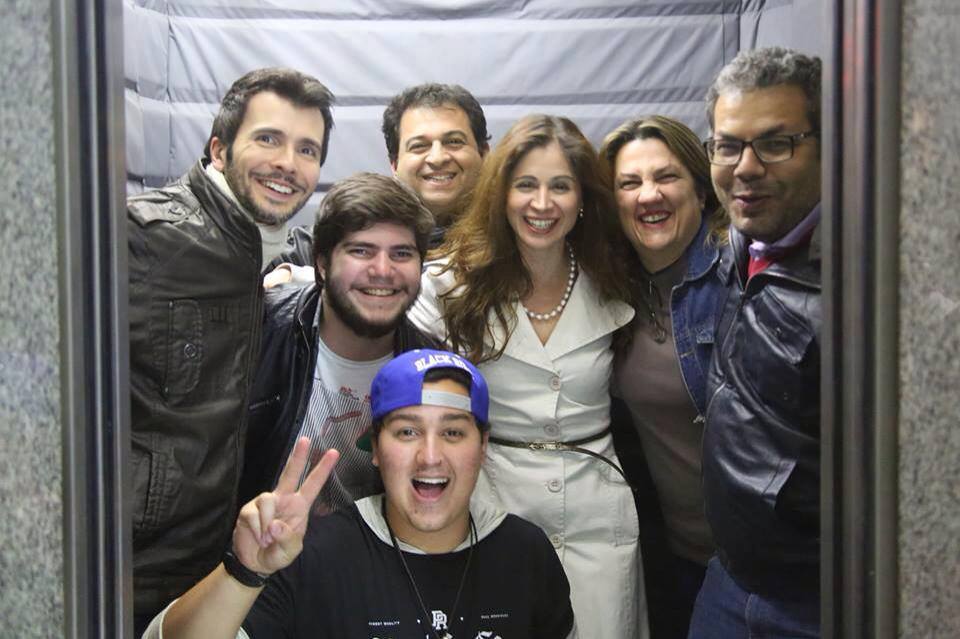 Atores e equipe de produção do curta - quatro horas gravando "dentro" do elevador - gente de todo canto do país.[/caption]